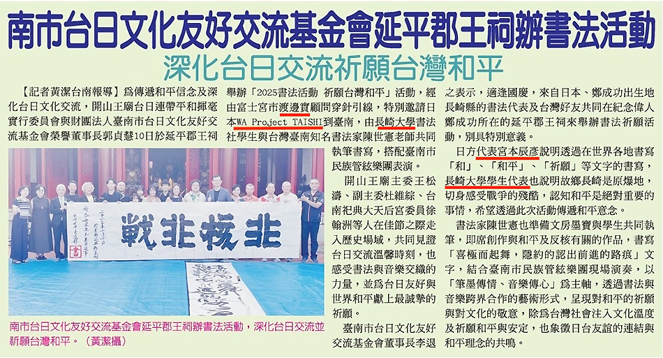 10月10日。台湾(中華民国)の建国記念日(国慶日)に台南市の延平郡王祠にて、台日文化友好交流を目的とした「2025書法活動 祈願台湾和平」が開催されました。