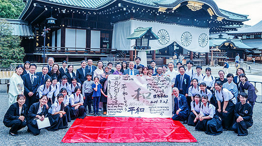 9月21日の国際平和デーにちなみ、全国51会場(全国48社の護国神社、靖国神社、広島・長崎平和公園)で、「第7回9.21世界平和の祈り」を開催しました。このたびの平和催事には書家やアーティスト、全国50校の高校書道部や放送部などが参加しました。